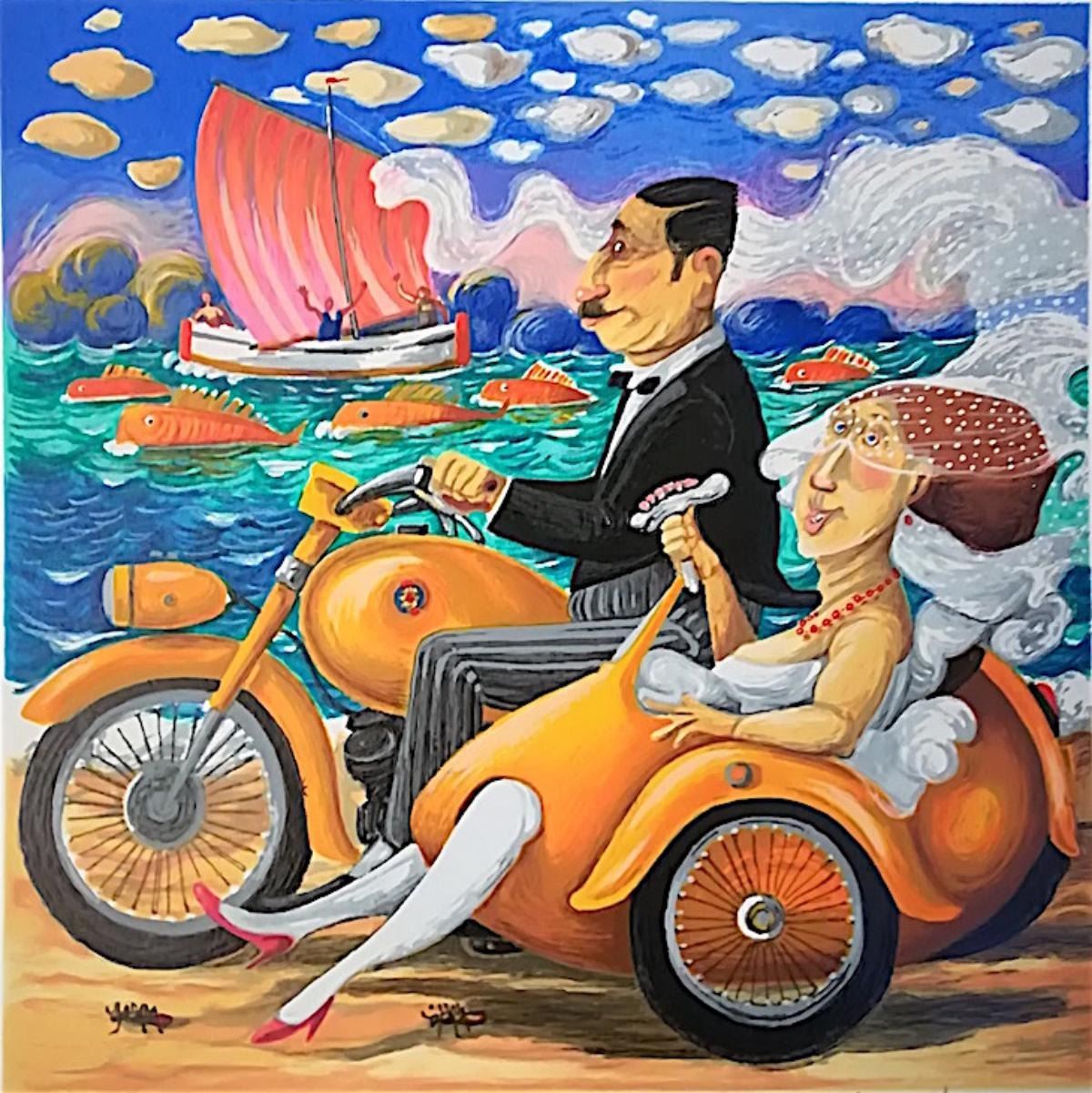 Artist: Pino Procopio. Medium: Original Serigraph. Title: VELA D'AMORE. Size: 40x40cm. Hand Signed and Numbered. Pino Procopio was born in 1954 in Guardavalle, Calabria. He enjoyed modelling clay since nursery school. In middle school he made erotic drawings, for which he was reproached many times. He attended the art school and then enrolled at the faculty of Architecture in Rome, never neglecting his artistic activity. In the 1970s, during his walks through Rome, he started to attend some of the galleries. His first exhibition opened in Rome at the La Bitta art centre in 1980. After that, he had a flourishing artistic career, rich in productions and exhibitions in the major Italian towns. Procopios artworks express irony, sarcasm and even cynicism. His artistic expression is provocative, without preconceptions, revelation of an intellectual delicacy. Now Procopio is recognised among the greatest Italian and international masters of the 20th century.: Pino Procopio was born in 1954 in Guardavalle, Calabria. He enjoyed modelling clay since nursery school. In middle school he made erotic drawings, for which he was reproached many times. He attended the art school and then enrolled at the faculty of Architecture in Rome, never neglecting his artistic activity. In the 1970s, during his walks through Rome, he started to attend some of the galleries. His first exhibition opened in Rome at the La Bitta art centre in 1980. After that, he had a flourishing artistic career, rich in productions and exhibitions in the major Italian towns. Procopios artworks express irony, sarcasm and even cynicism. His artistic expression is provocative, without preconceptions, revelation of an intellectual delicacy. Now Procopio is recognised among the greatest Italian and international masters of the 20th century..