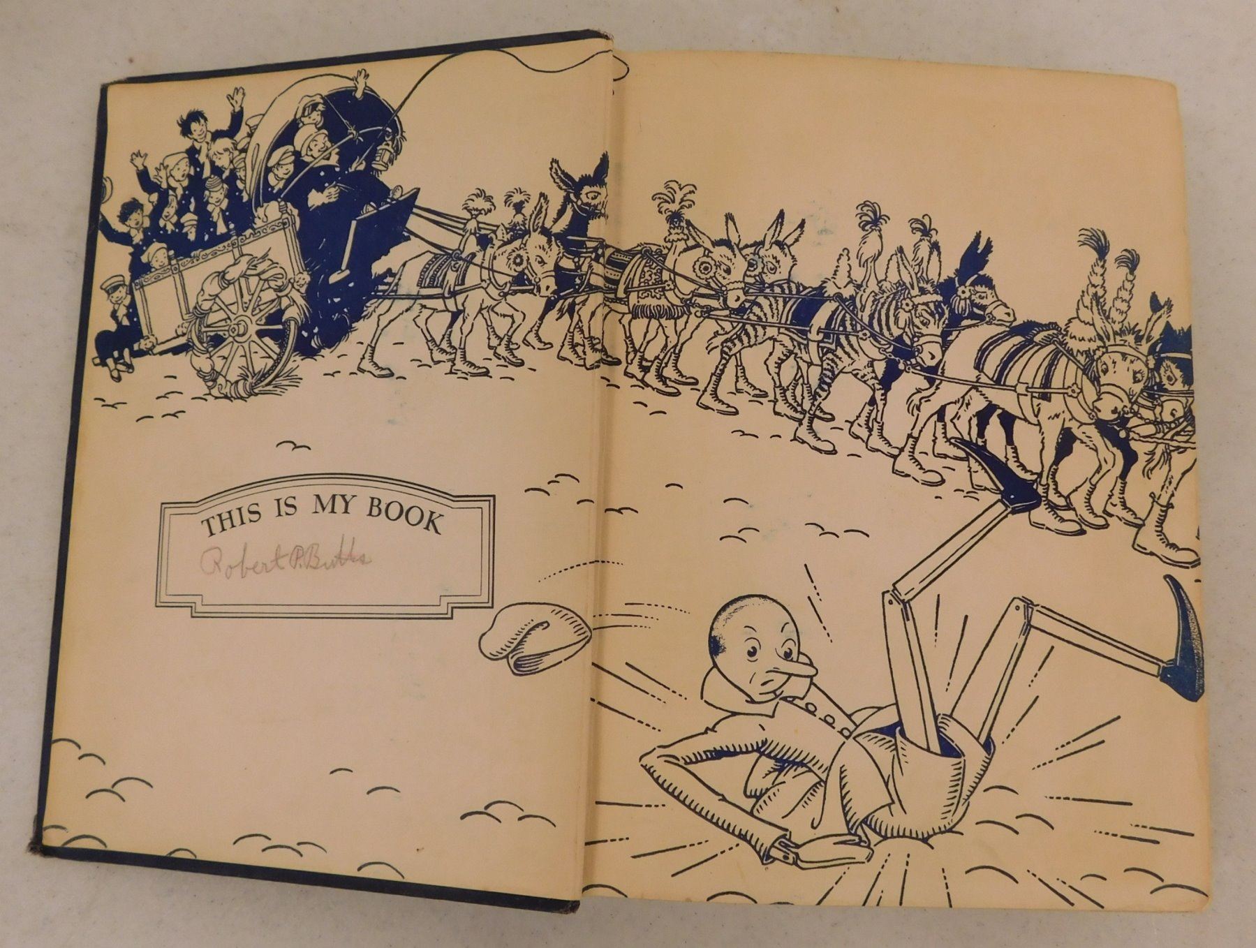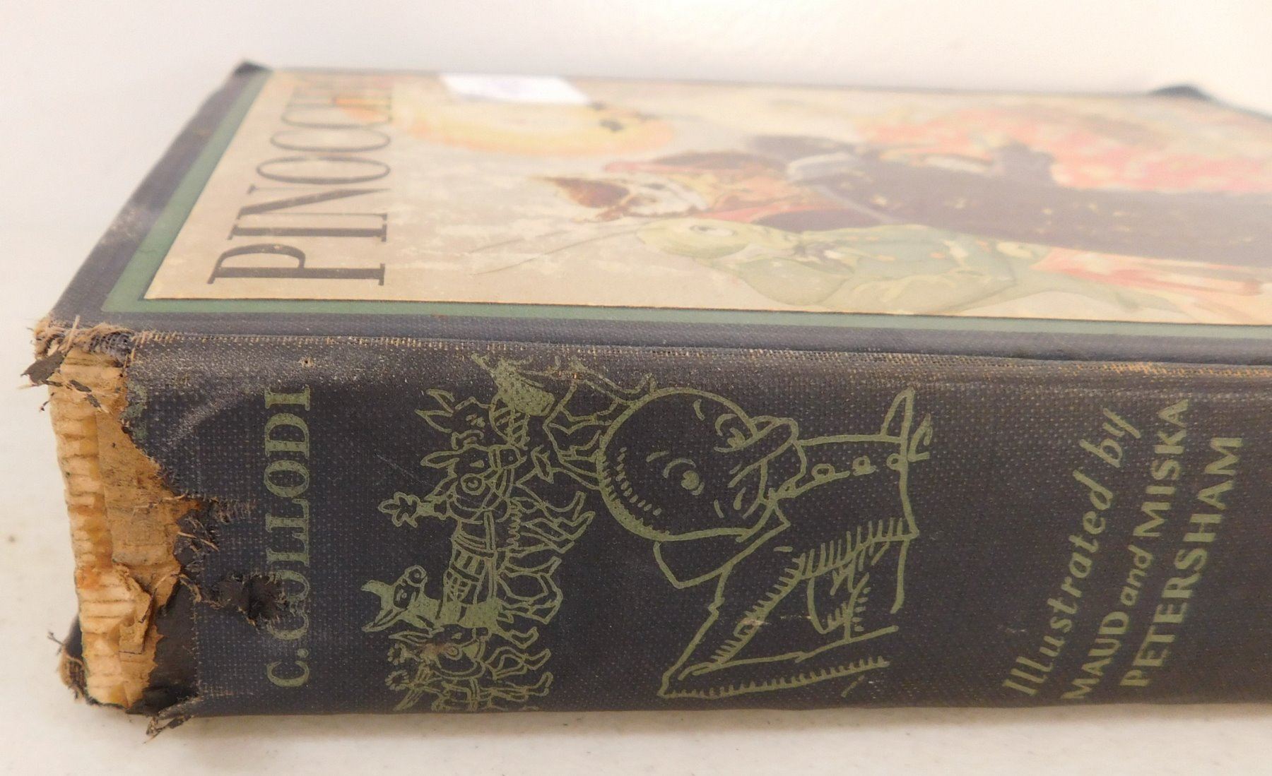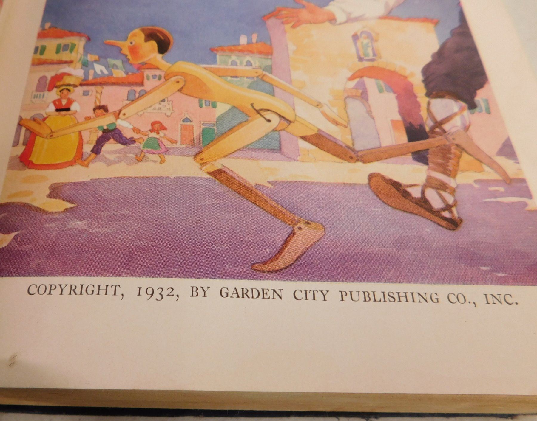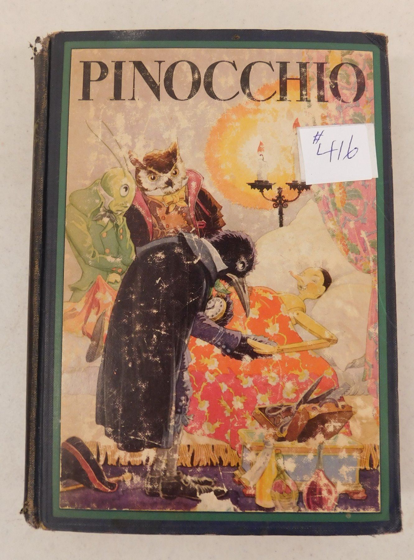 Pinocchio Book, 1932. Made of paper and ink, the item measures 6.75" x 9" x 1.5". USA, New York state. Condition: Used and well-read, some wear to binding, previous owner name on inside cover, see images. Shipping: $14.50 w/insurance and signature.