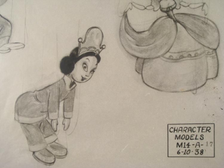 This is an original photostat copy used in the production of the classic Disney movie Pinocchio. This is from a model sheet drawing, which was a reference for the animators as they were drawing and painting the cels. This shows some of the character that were in Mister Geppetto's workshop. The lower left corner is identified with a number, and is dated 6-10-1938. This was probably early on in the production, as the film was released in 1940. * Medium: Photostat copy on paperTitle: "Character Models"Image size: 11 1/4 x 8 1/2 inches Presentation: Double matted in pinkMatte size: 16 x 20 inchesCondition: Excellent; sealed in cellophaneCertificate of Authenticity: Included
