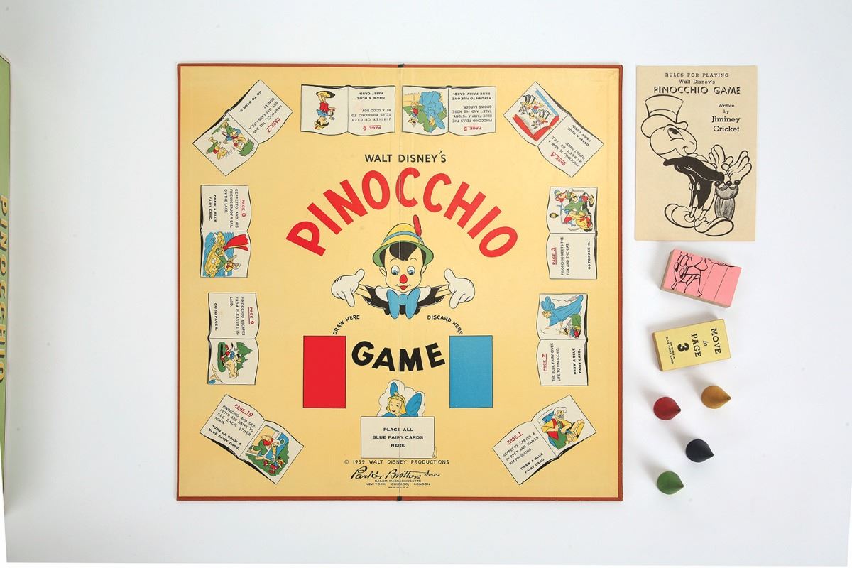 (Parker Bros, 1939) Contains 4 wooden-nose game pieces, two decks of cards, the game board, and the original instructions insert within the original box. Box measures 19.25"x10"x1.8". In very good condition with minor wear to the box lid.