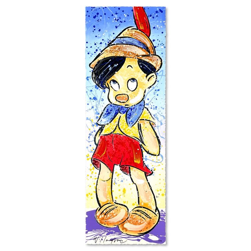 "Pinocchio" is a limited edition serigraph on deckle edge paper by David Willardson, numbered 1/495 and hand signed by the artist. Includes Letter of Authenticity. Measures approx. 12.5" x 36.5" (image).