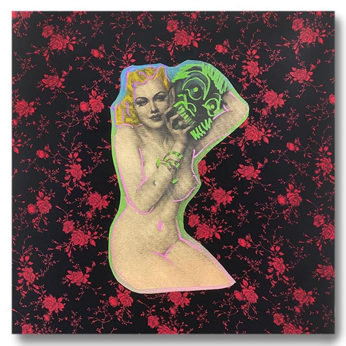 "Pinup and Mask" is a limited edition hand pulled silkscreen mixed media on mixed media by Andy Warhol protege Steve Kaufman (1960-2010). This piece is numbered and 43/100 and hand signed inverso. Includes letter of authenticity. As is common with Kaufman's works, this piece may have perceived minor flaws, but is in overall good condition. Measures approximately 25" x 22" (image).