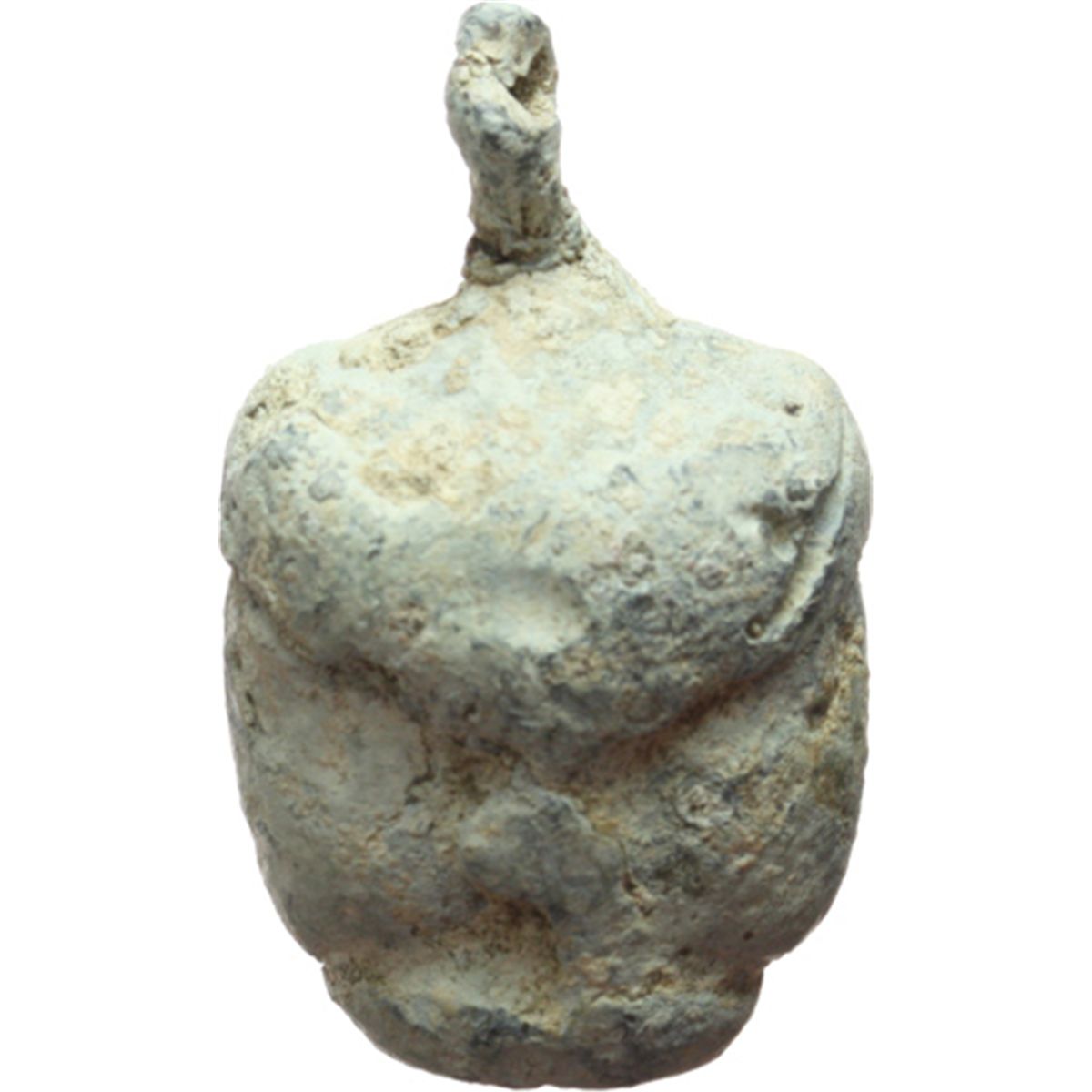Repubblica Romana. Piombo. Elemento a forma di testa di Giano. PB. g. 51.60 RRR. Altezza: 31.5mm. Di peso compatibile con un sestante. Apparentemente inedito. qBB.