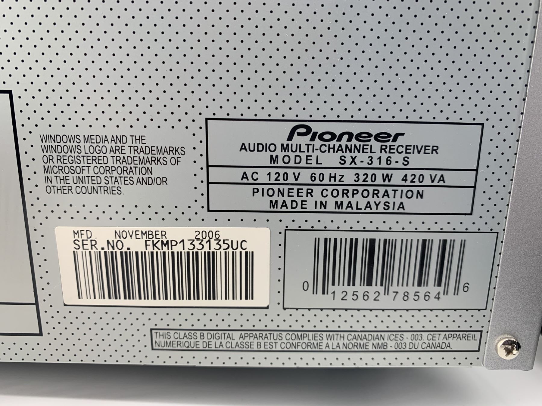 Pioneer Audio Multi Channel Receiver Model# SX-316