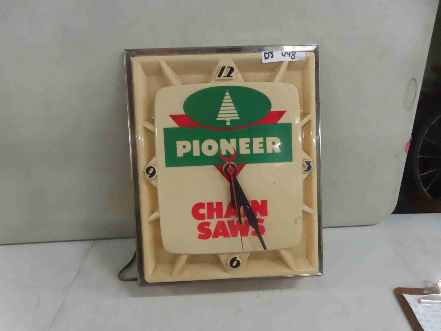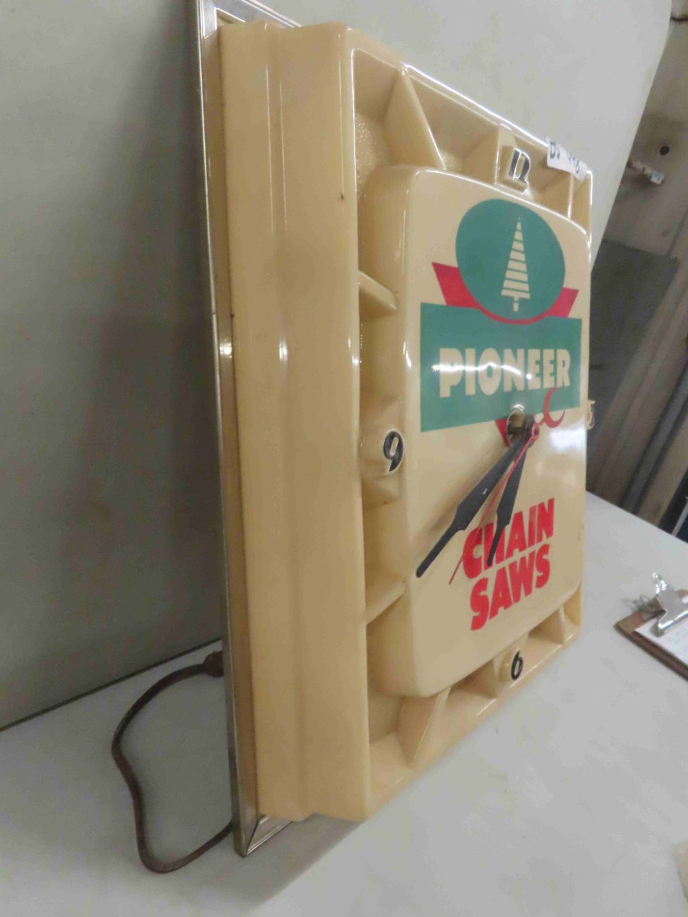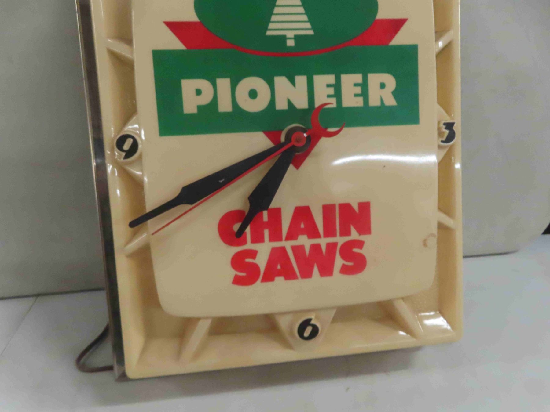Pioneer Chainsaw Clock 17" x 21" - Clock Works but Didn't Light - needs bulbs maybe more?