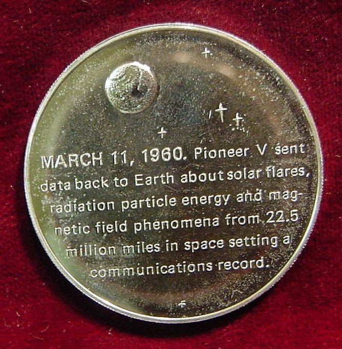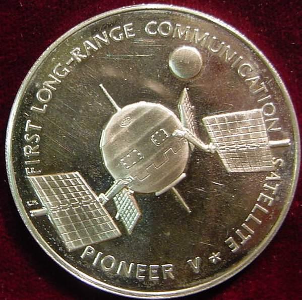 Pioneer V First Long-Range Communication Satellite Proof Silver Medal. 39mm.