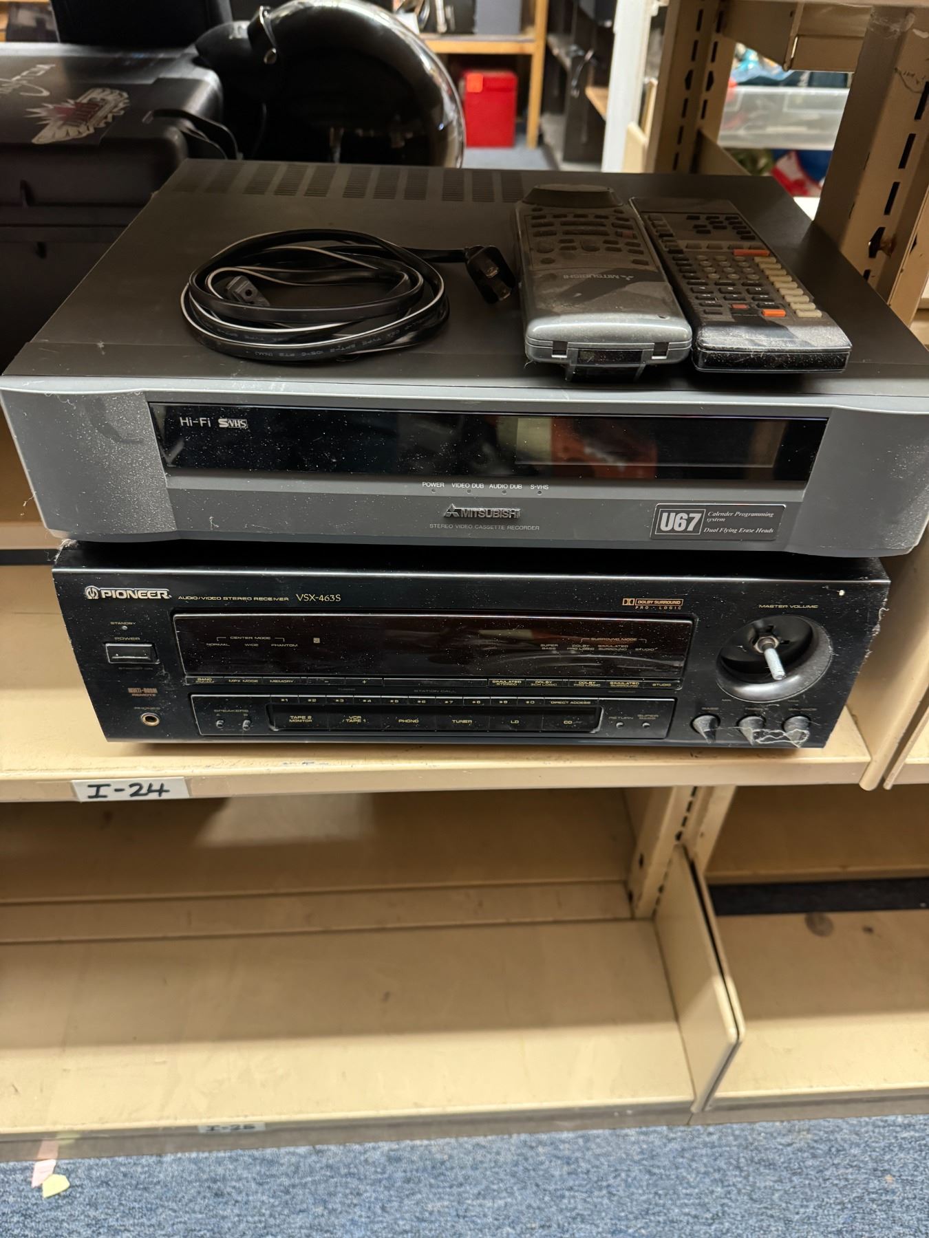 Pioneer stereo receiver and Mitsubishi stereo video cassette recorder