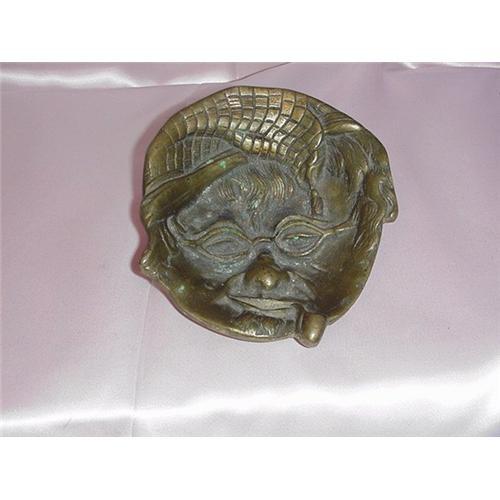 Bronze Pipe ashtray. 4 3/4" long x 4 1/4"wide. In the form of a man's face smoking a pipe. Marked on back, "Depose"