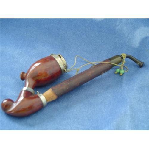 NOTE! This pipe was purchased from the estate of Cato Adams in 1986. He was a Black gentleman, featured in Our World magazine in the 1950s. Mr. Adams had an extensive collection of pipes from around the world. Each one had been smoked at least once. Unusual three part signed "Made in Czechosovakia - Real Briar" pipe. NOTE! Technically, this is a four-part pipe (no picture). The bakelite?? stem just unscrewed from the shank. This pipe is definitely different. (2.0 oz)