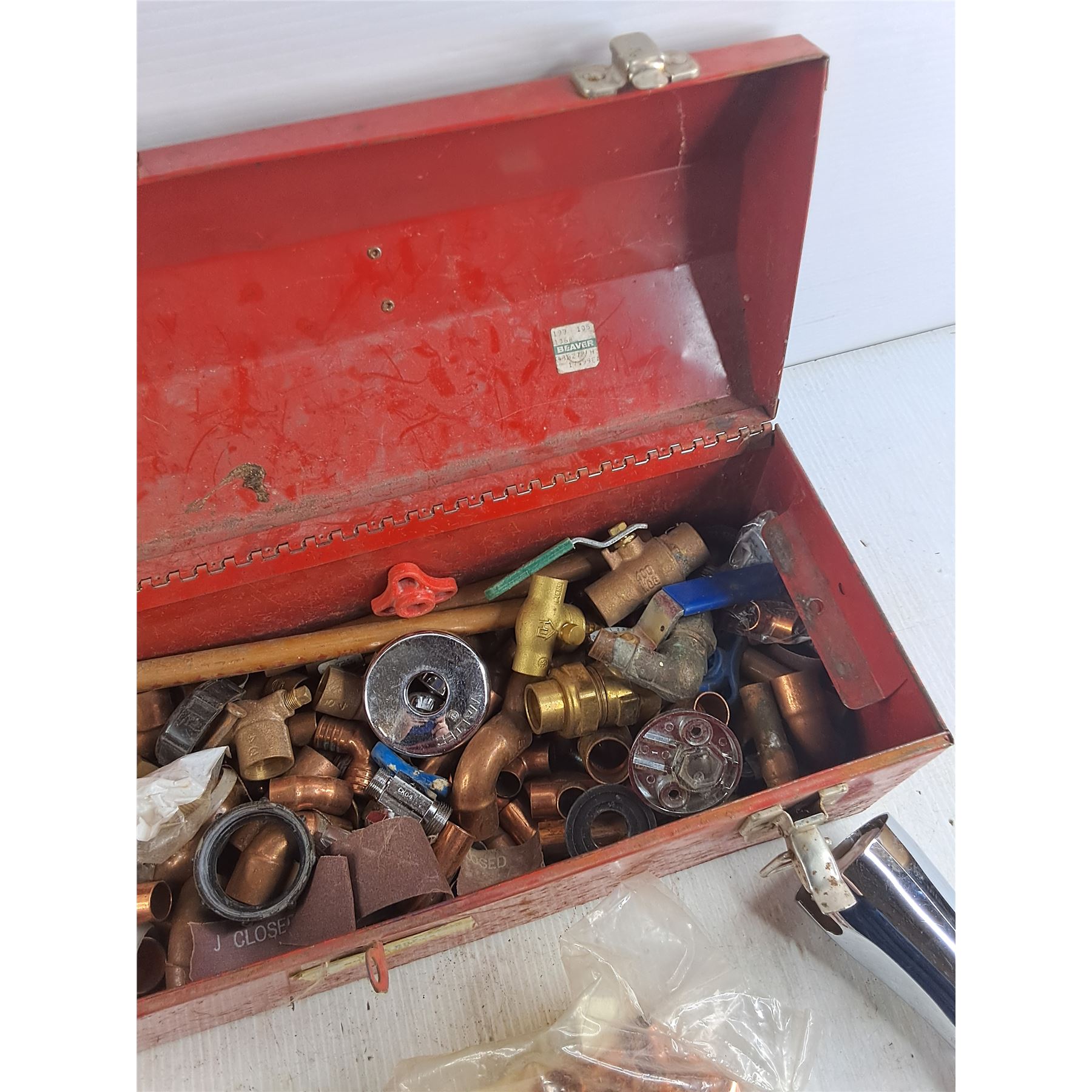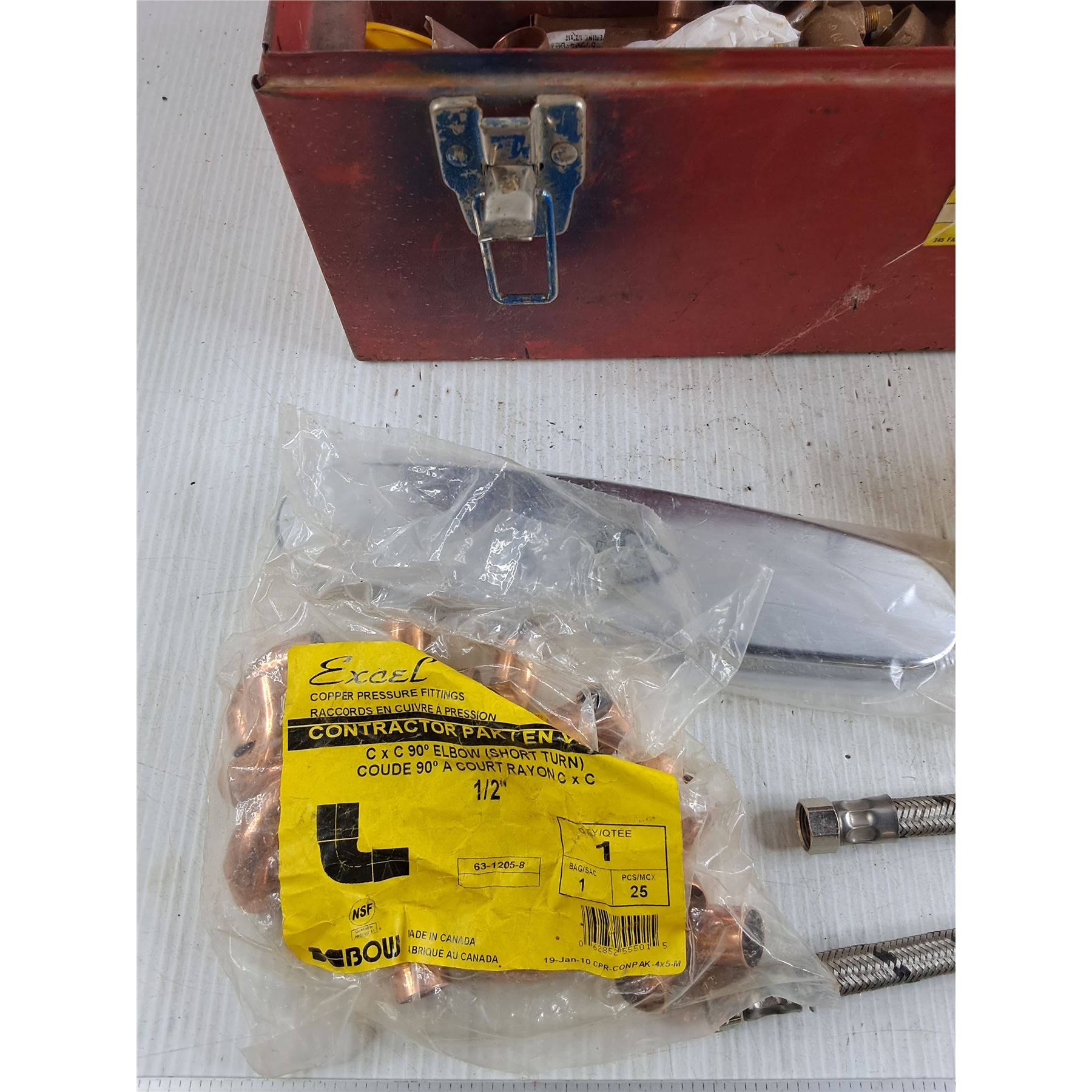 Pipe Fittings, Hoses, Valves, Metal Tool Box, Misc Plumbing Supplies - Cannot Ship