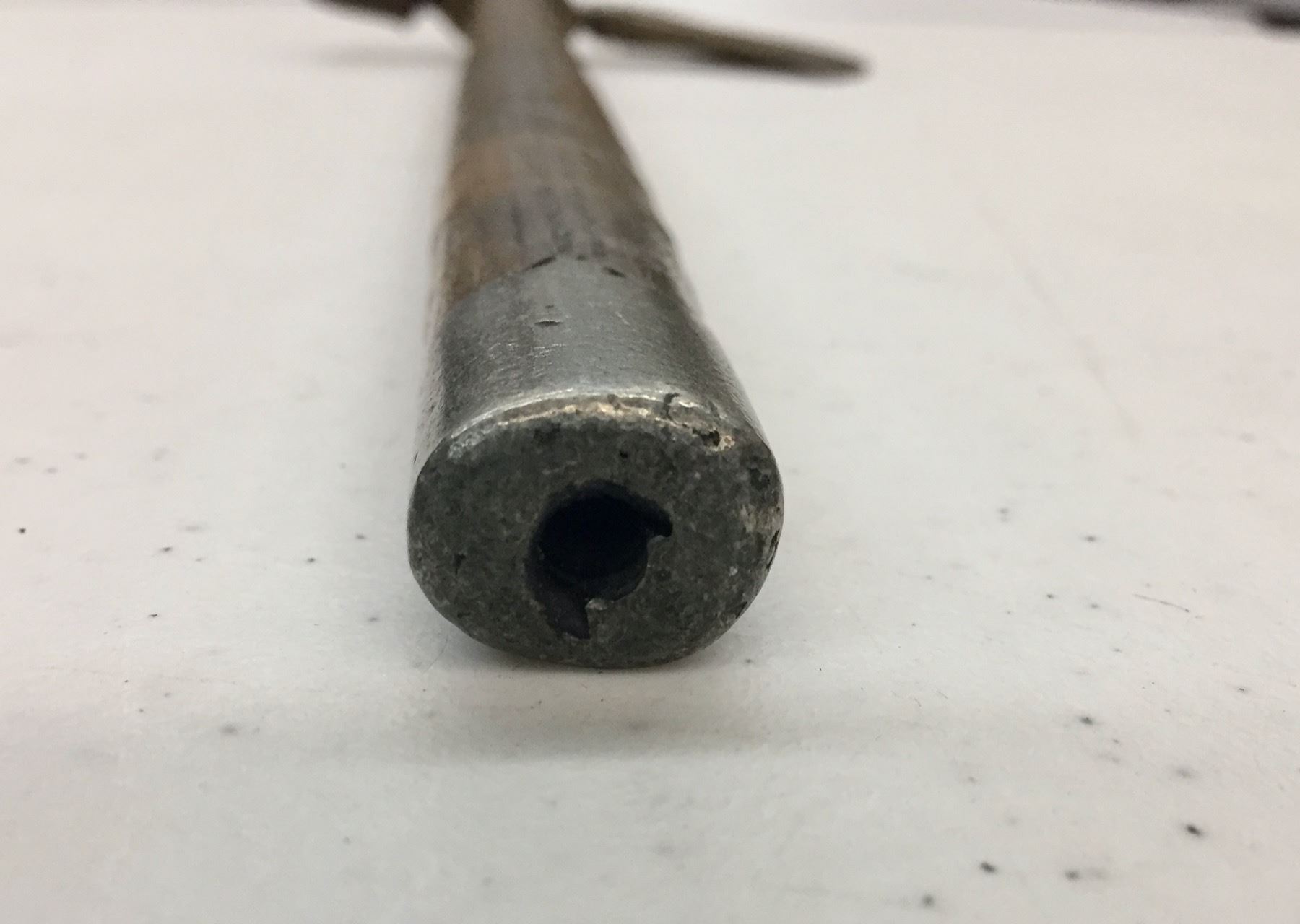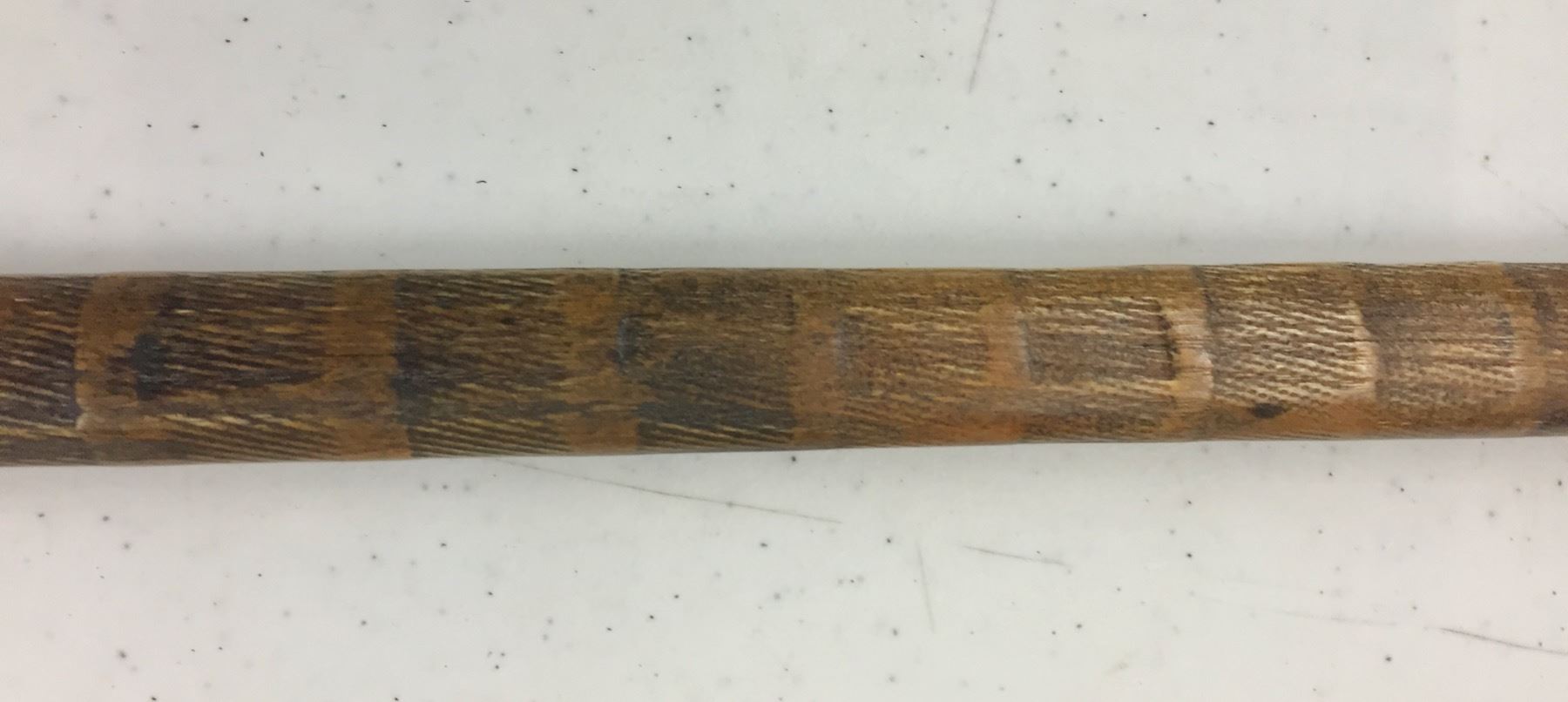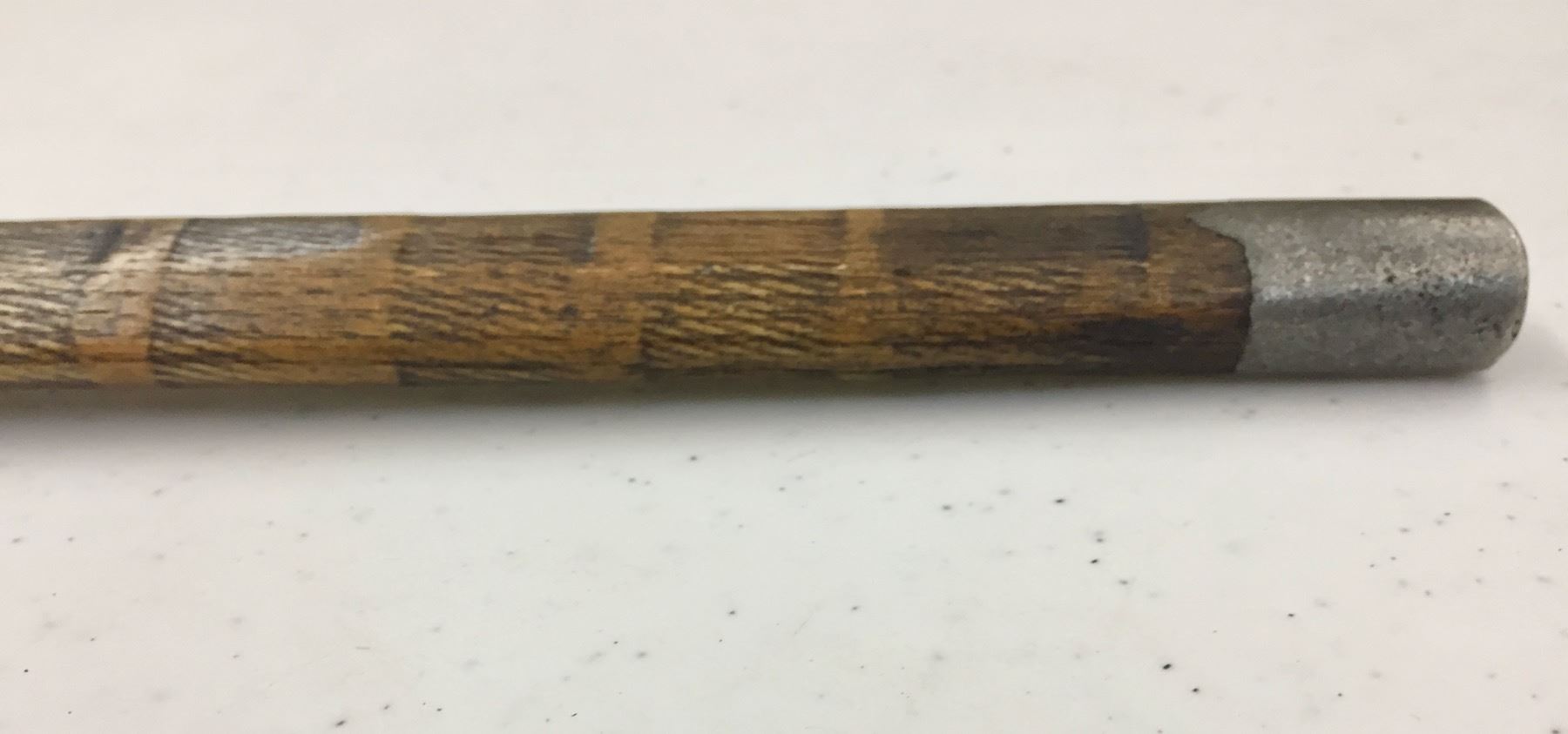 Description: Offered for sale in this lot is a an old pipe tomahawk from the late 19th Century. The head is brass and there are decorative brass tacks on the handmade wood stem. It has been smoked quite a bit. Maker: Unknown. Approx. Age: Late 19th Century. Size: 7-1/4”w x 19” long. Condition: Good for its age, some wear expected. Please look closely at the pictures - they are an important part of our description. Shipping: There will be a $10 handling / packaging fee for shipping this lot. The actual cost of postage will be added on top of that.