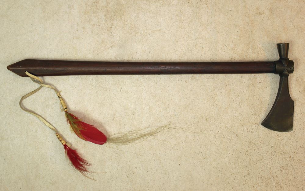 Wild West Style Pipe Tomahawk with great antique look. Nice even patina. Haft measures approx. 24" in length.