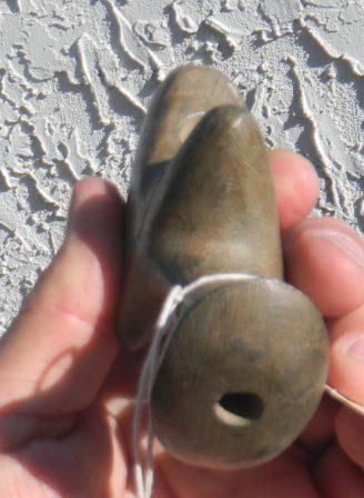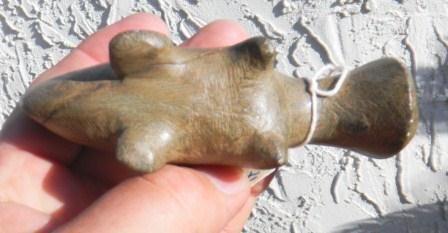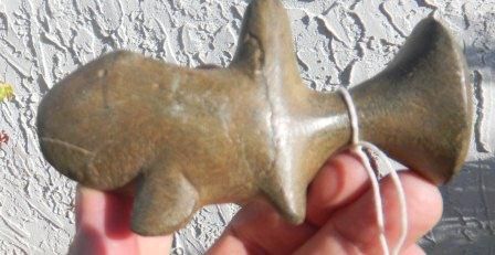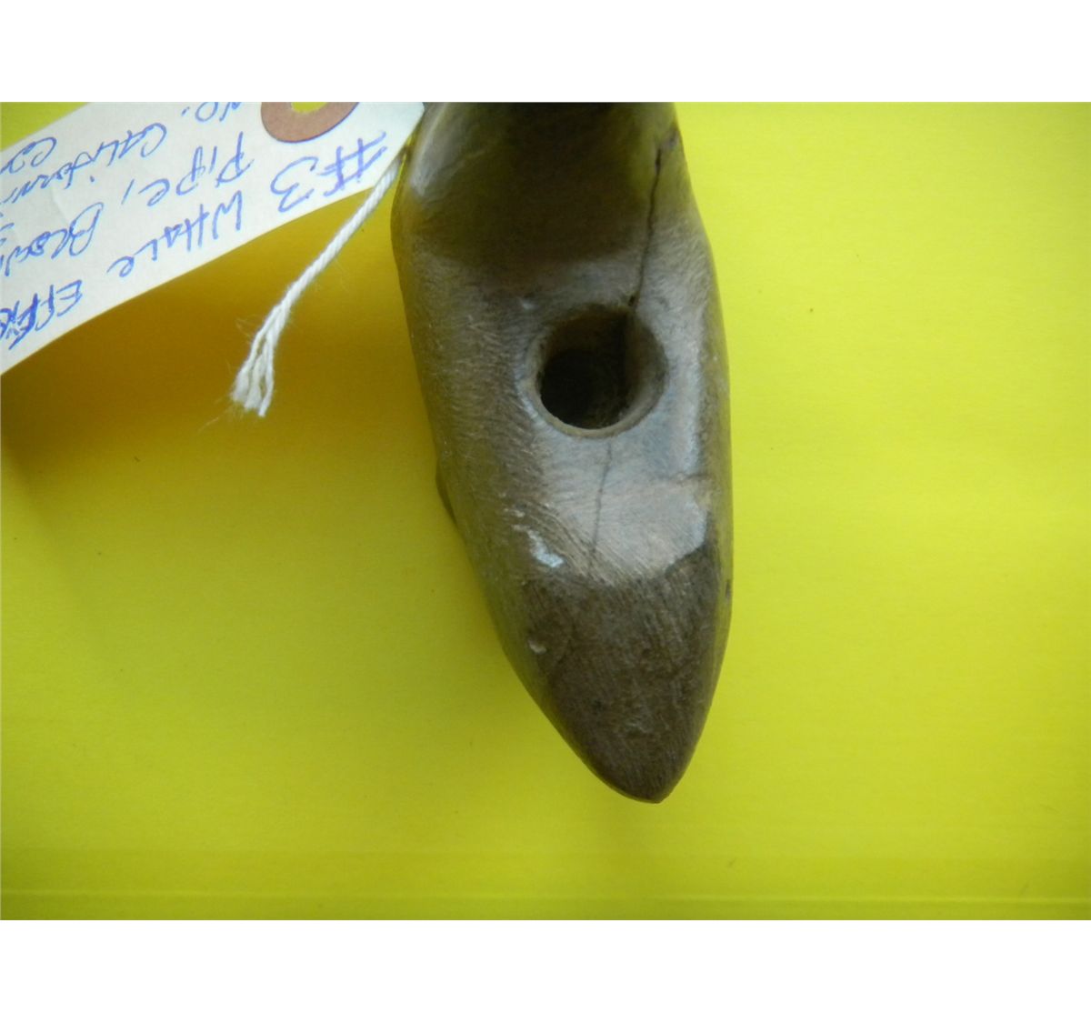 Whale effigy pipe, brown chert from Northern California approximately 5x2 inches. Good condition