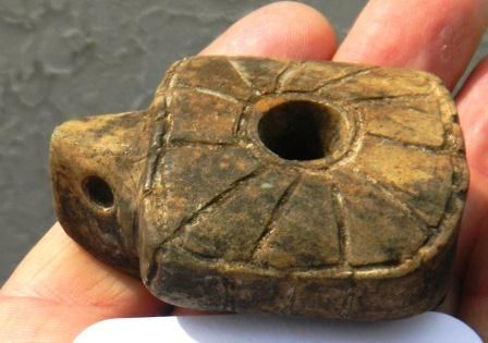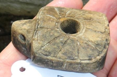 Pipe, turtle effigy, sandstone, found in Ohio, Mississippian era. Shipping $15.00. Good condition