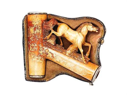 Carved meerschaum - galloping horse. Original box with leather covering. Austrian, late 19th century. Size: 8 cm