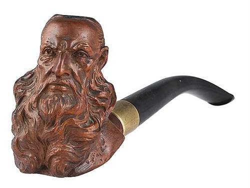Carved briar root. With the portrait of a bearded dignitary of the church. Saint Claude type pipe. Size: 18 cm
