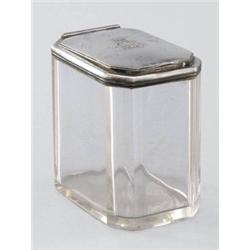Bécs, 1863, antik ezüst, zsanérosan nyitódó fedéllel, nyolszögletu csiszolt üveg, Mayerhoffer és Klinkosch, belül aranyozott, koronás "SS" monogramm vésettel, nettó cca 30 g; m: 10 cm