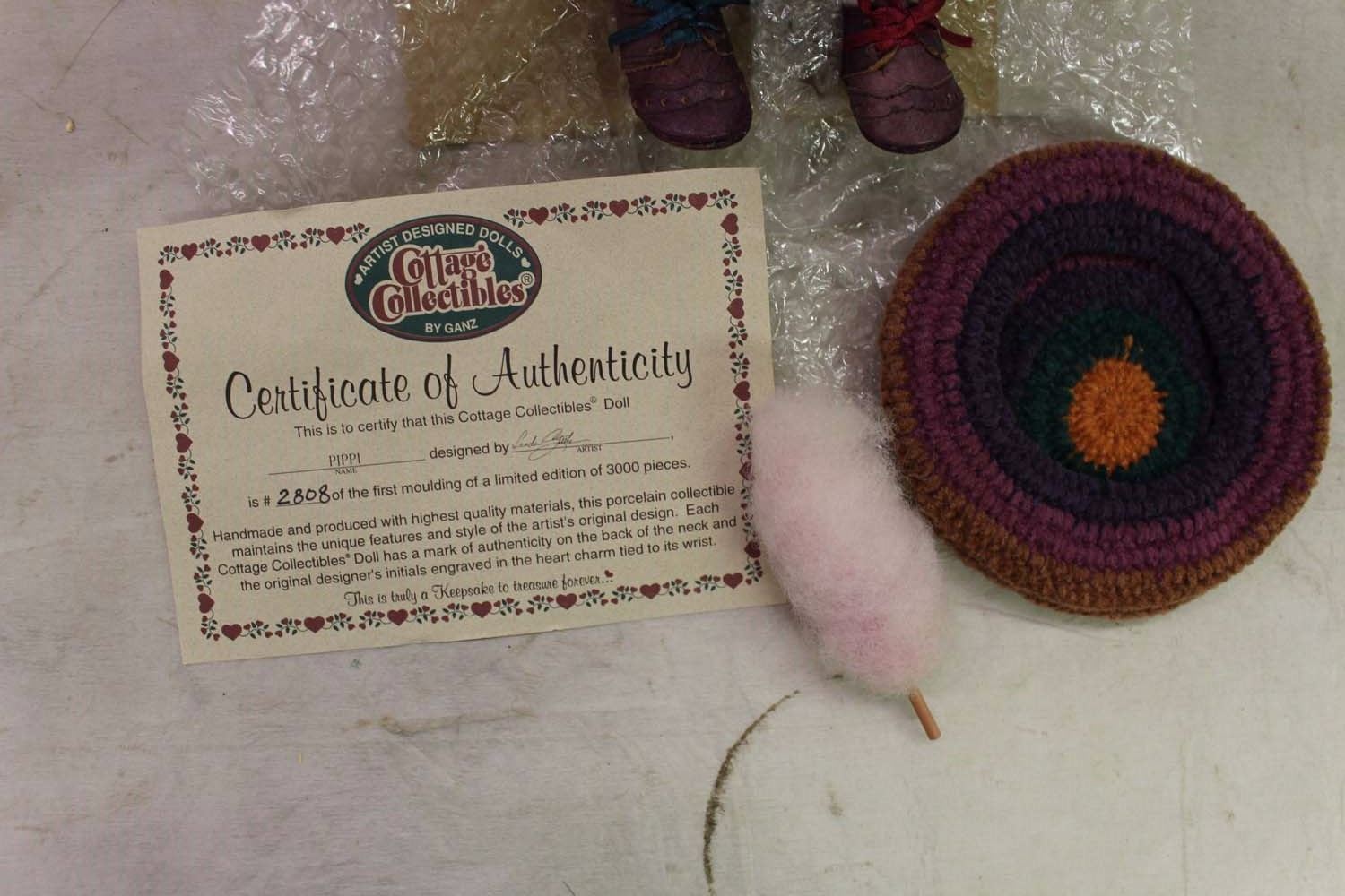 Pippi Porcelain Doll, Cottage Collectibles W/ Certificate, Ex. Condition