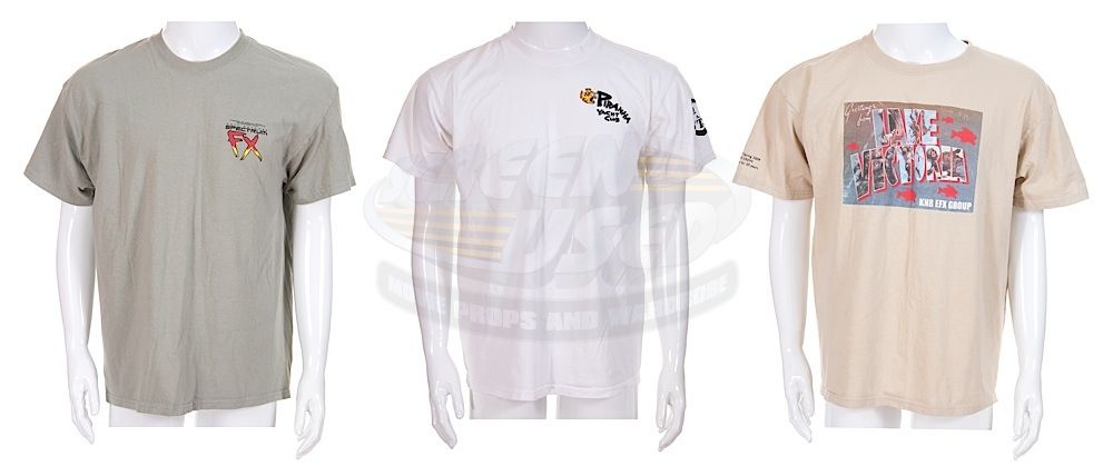 (Dimension Films, 2010) Shirts like these were given to various members of the film's crew. Two of the shirts are a size XL and one is a size large. Each shirt features film related graphics and remain in good condition.
