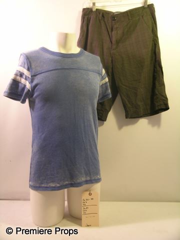 Josh (Jean-Luc Bilodeau) screen worn, hero, faded blue retro 'Alternative' shirt, (size S) and dark olive plaid 'Converse' shorts. (size 28) Includes wardrobe tag!