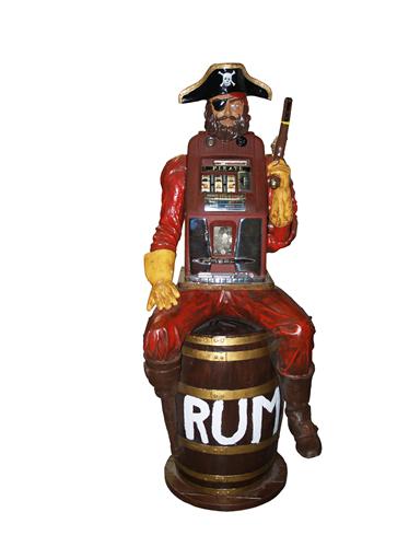 Pirate on a Barrel w/5 Cent Mills Hi-Top Slot Machine. When Slot is played, the Pirate speaks one od 29 different phrases w/keys