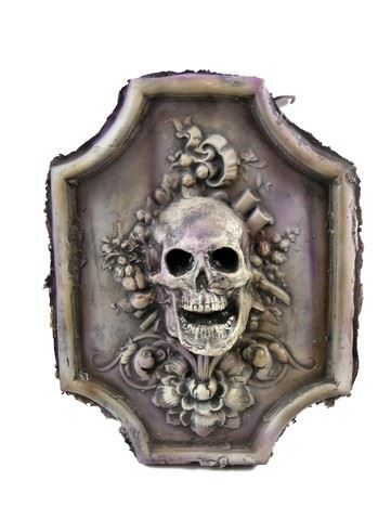 Pirates Of The Caribbean Dead Man's Chest Skull Shield Prop - Headhunters and skulls play a big part in "Pirates of the Caribbean: Dead Man's Chest" (2006). This is a large human skull wall prop used as a background set decoration in the production. Made to look like metal it is made of foam rubber. (Approx. 23" long).