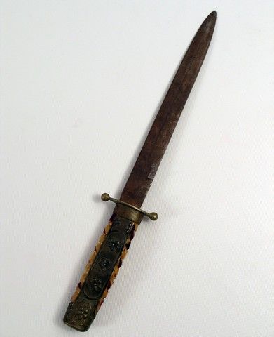 Pirates of the Caribbean At World's End Dagger Prop - From the third in one of the most successful franchise in movie history, "Pirates of the Caribbean: Dead Man's Chest" (2007) comes this rusted metal dagger from Captain Sao Feng's (Paul Nakauchi) Lair. (Approx. 13 1/2" long).