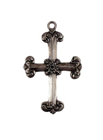 Pirates of the Caribbean Black Pearl Cross Prop - "Pirates of the Caribbean: Curse of the Black Pearl" (2003) was the first in a franchise that has become one of the most successful in film history. This is a metal ornate cross used as a set decoration background prop in the production. (Approx. 3" x 2").
