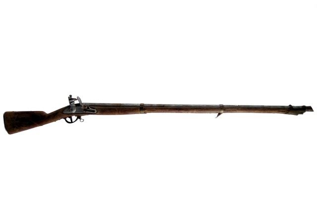Johnny Depp stars in this hit worldwide franchise Pirates of the Caribbean: Dead Man's Chest (2006) and this is a production used and acquired brown rubber flint lock rifle. This rifle was used in the production most likely in the background on screen and measures approximately 56" long. A perfect movie prop to own this this favorite.
