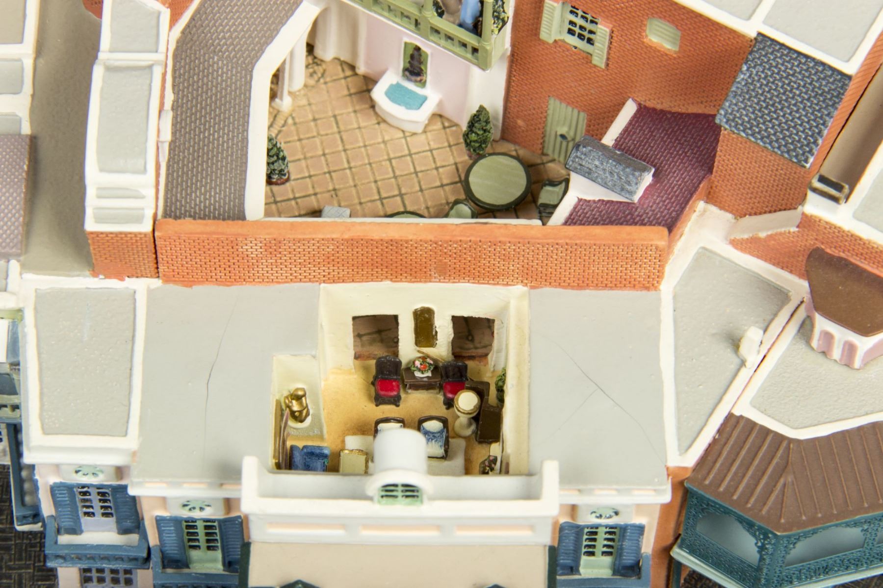 . (Disneyland, 2006) An incredible first edition scale model of Disneyland's "Pirates of the Caribbean" attraction created by Robert Olszewski. This very rare replica includes two scenes from the attraction which can be inserted into the back of the model and light up. Measuring 10"x9.5" and 6" tall, the model is in very good condition with little wear and comes in its original box and packaging. Given that these miniatures have numerous fine details, there may be a small chip, crack, or break that may have gone unnoticed. Please use the images of the item to help assess the full condition.