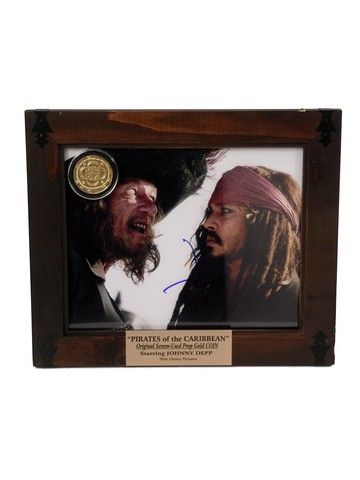 Pirates of the Caribbean Johnny Depp Autograph Photo & Screen Used Gold Coin
