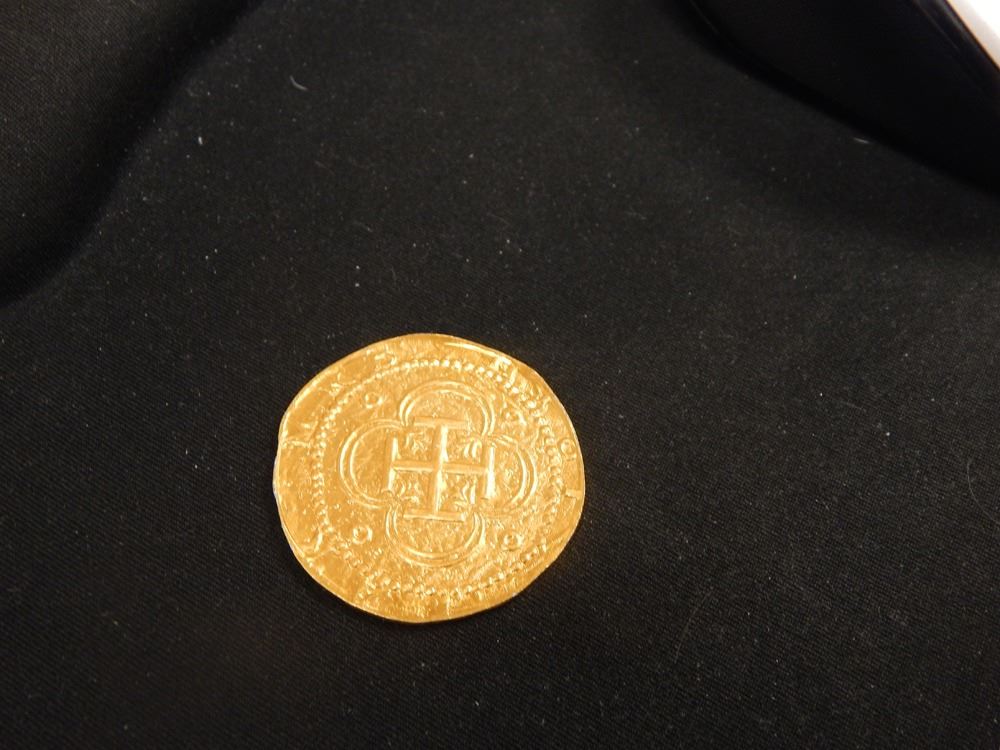 Prop doubloon from the first installment of the Pirates of the Caribbean film franchise. This piece is used in the end scene with Keith Richards in the cave of gold. All items come with a certificate of authenticity good for the life of the piece.