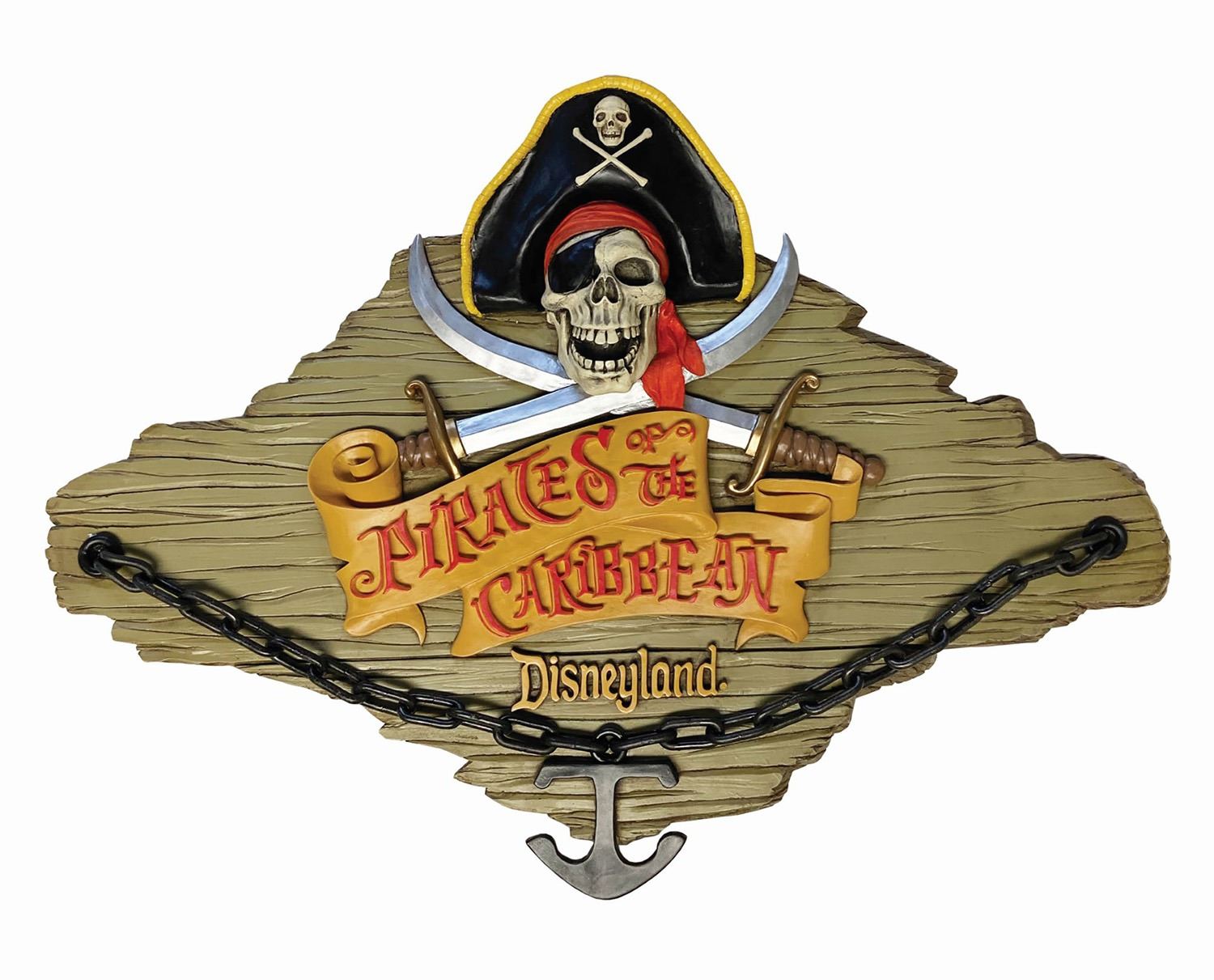 (Disneyland, 2003) A limited edition wall plaque based on the "jolly roger" skull plaque from the Pirates of the Caribbean attraction. The plaque plays portions of the dialogue heard within the attraction and is hand-numbered 255/500 on the reverse. The plaque measures 16"x23" and 2.5" deep. The condition is very good with minimal wear, and comes in its original packaging with COA.