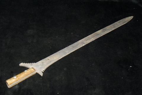 Pirates of the Caribbean: The Curse of the Black Pearl (2003) - A production used background stunt pirate sword. Includes original Disney Studios Prop Department label. With metal blade and squared on both sides. 29" x 5". Oversized item. Additional shipping charges required.
