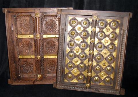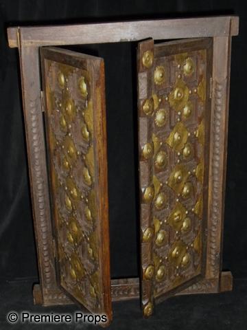 Pirates of the Caribbean: The Curse of the Black Pearl (2003) - Two decorative wooden window frames with opening doors used in the seaside village set. 17" x 20". Oversized item. Additional shipping charges required.
