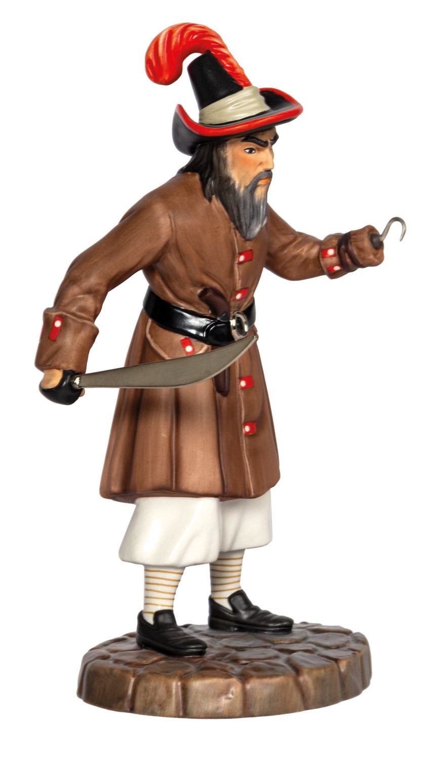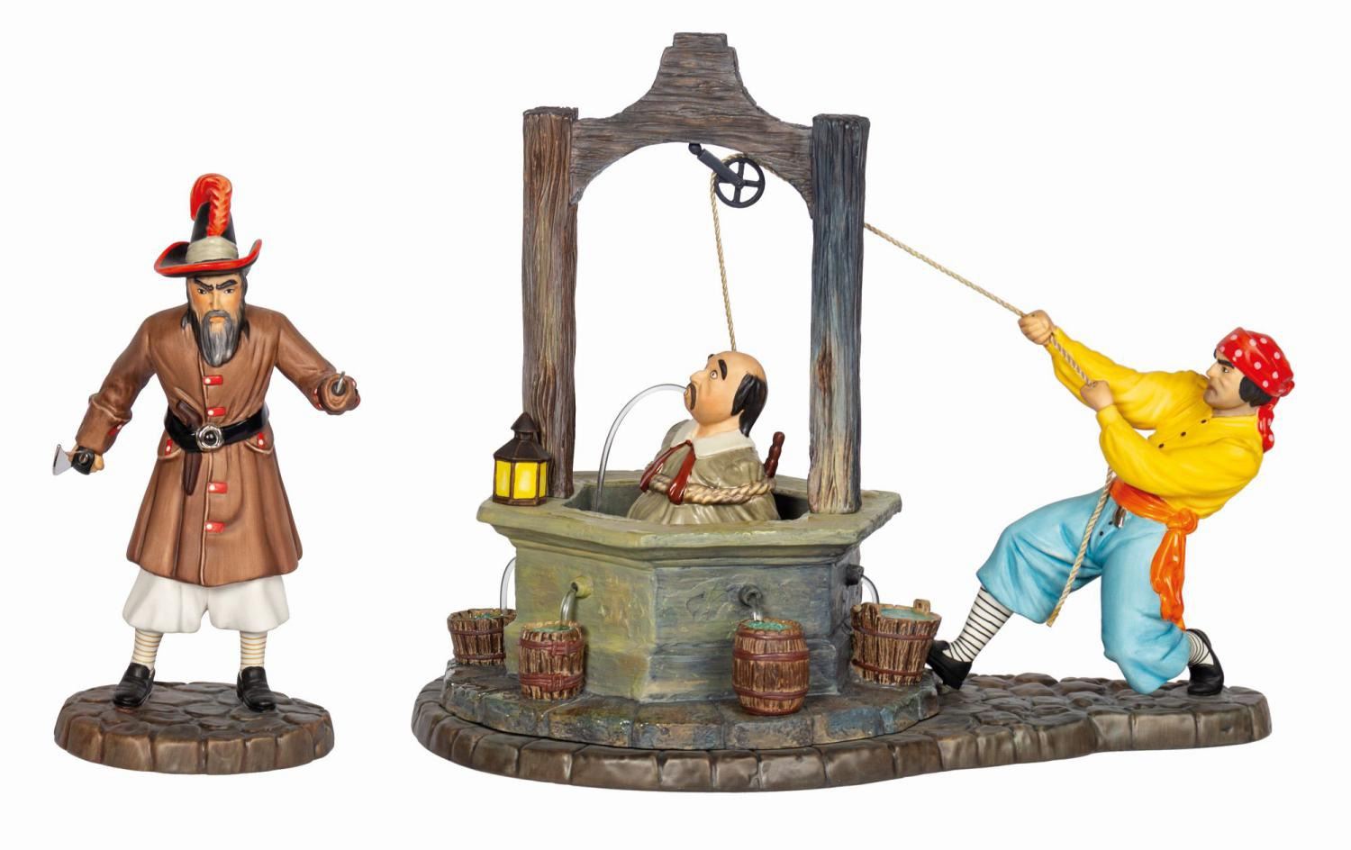 (Disneyland, 2000) A limited edition Pirates of the Caribbean "A Pirate's Life for Me" figure set by Walt Disney Classics Collection. Constructed of porcelain, metal, and resin components, the set was designed by sculptor Bruce Lau in a limited edition of 1500. Both pieces are hand numbered "313" on the bottom. The set is accompanied by a COA signed by Imagineer X. Atencio as well as Disney costume designer Alice Davis. The captain measures 6.75"x3.25" and 3" deep and the Pirate and the Magistrate measure 8.25"x9.5" and 6.5" deep. Both remain in very fine, as-new condition, with only minor crazing to the glaze on the bottom of the base. The original green WDCC cardboard box packaging is included.