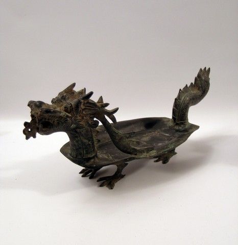 From the lair of one of the Nine Pirate Lords, Sao Feng, in "Pirates of the Caribbean: At World's End (2007), a metal dragon dish prop. (Approx. 16" long).