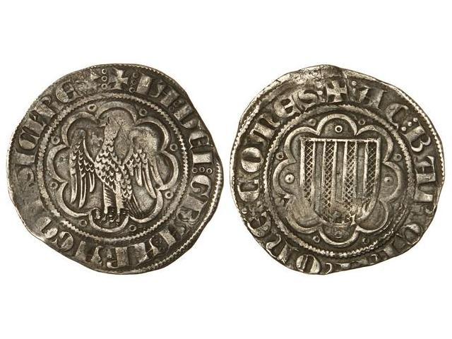 Pirral. JAUME II. SICÍLIA. Anv.: ¶IA¶DEI¶GRA¶ARAGON¶SICL´REX¶. Águila coronada con las alas extendidas. Rev.: ¶AC¶BARChINONE¶COMEX¶. Armas catalanas con anillos a los lados, arriba y abajo. Cru.VS-358.1. MBC-.