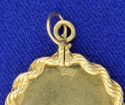 In 14K yellow gold, it is 1 1/4 inches long with the bale. 3.5g