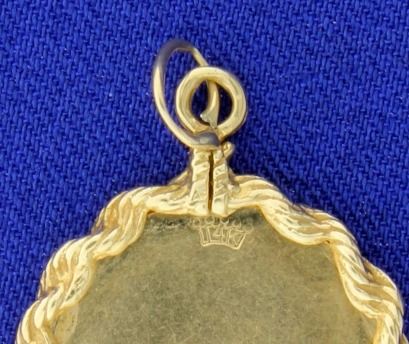 In 14K yellow gold, it is 1 1/4 inches long with the bale. 3.5g