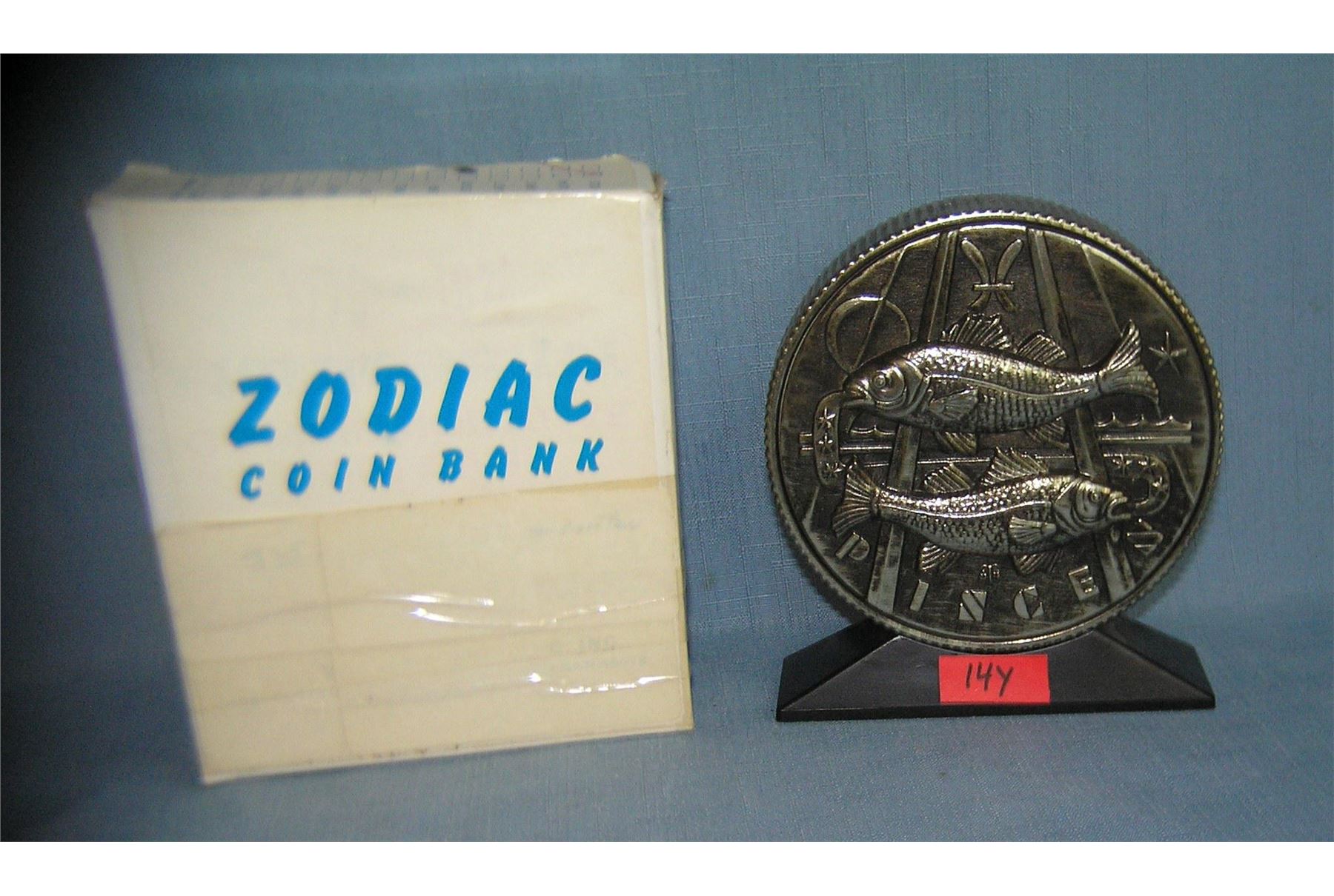 Pisces all cast metal Zodiac bank with original box est. value $75.00-$80.00