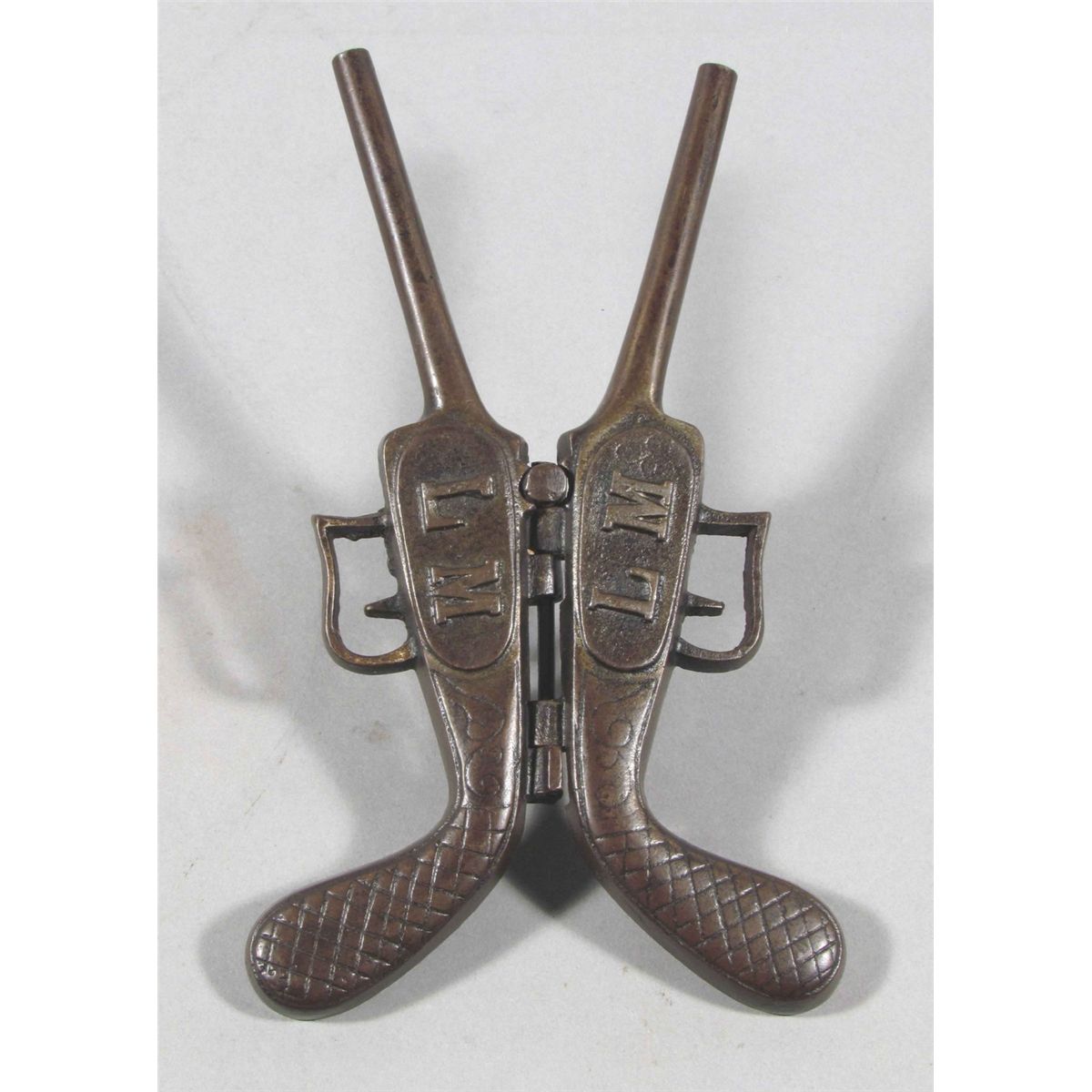 Pistol Figural Boot Jack. L.M. embossed letters on both sides. Cast iron. Good condition. 8 1/2 inches long. Start Price $50