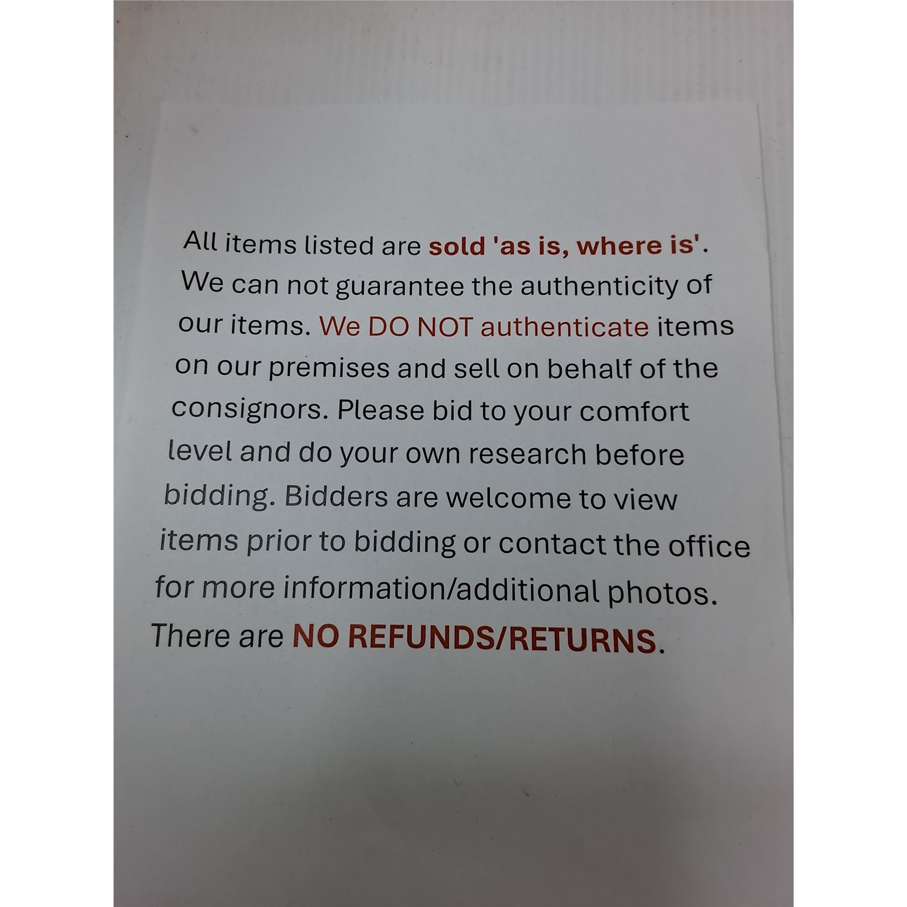 All advertising is a GUIDE ONLY. Buyers must satisfy themselves to the condition, identity and authenticity prior to bidding on an item and shall not make objections after the sale.
