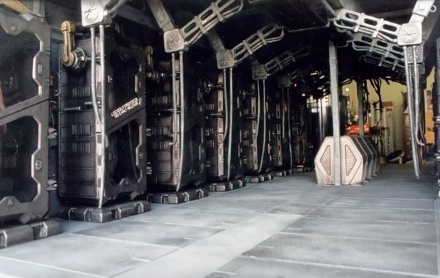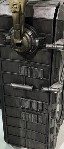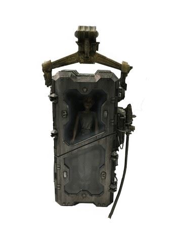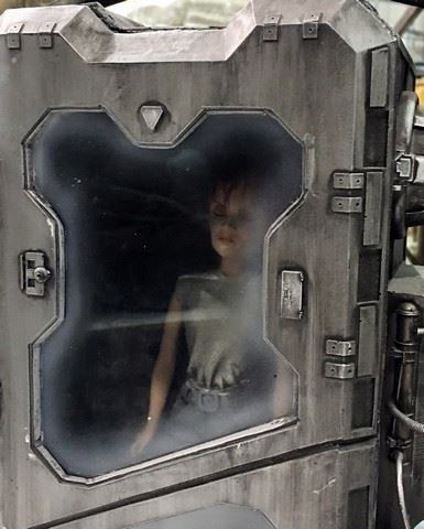 This screen used Cryo Locker was one of the hero filming miniatures ripped out of the cargo container in the crash of the Merchant Vessel Hunter Gratzner in the opening crash sequence in the film Pitch Black (2000). Each fiberglass and epoxy miniatures was rigged with pneumatically actuated pull cables that launched each Cryo Locker out of the cargo container at the point of the spaceship's impact. Cryo Locker includes a puppet. 20" tall x 11" wide. 1:6 ratio. This incredible, handmade miniature is from the celebrated collection of Academy Award winning New Deal Studios. New Deal Studios is a 21st Century Media Studio, unlike any in the world. A full-service film production and visual effects studio, with over 20 years of iconic imagery, New Deal Studios develops, designs, prototypes, and creates all types of high caliber media projects. Founded in 1995 by Matthew Gratzner, Ian Hunter and Shannon Blake Gans, this artist owned and operated independent studio, born in the heyday of visual effects, has truly evolved into the technology driven studio for the future, consistently delivering the perfect marriage of artistry and technology. Award winning credits by New Deal Studios include high-profile projects such as Dark Knight Rises, Hugo, The Avengers, Oz the Great and Powerful, Iron Man, The Dark Knight, Watchmen, I am Legend, Night at the Museum, Whiteout, 2012, Alice in Wonderland, Inception, Battleship and Interstellar.