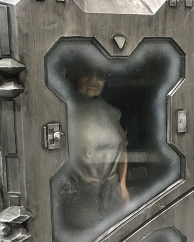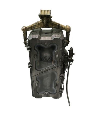 This screen used Cryo Locker was one of the hero filming miniatures ripped out of the cargo container in the crash of the Merchant Vessel Hunter Gratzner in the opening crash sequence in the film Pitch Black (2000). Each fiberglass and epoxy miniatures was rigged with pneumatically actuated pull cables that launched each Cryo Locker out of the cargo container at the point of the spaceship's impact. Cryo Locker includes a puppet. 20" tall x 11" wide. 1:6 ratio. This incredible, handmade miniature is from the celebrated collection of Academy Award winning New Deal Studios. New Deal Studios is a 21st Century Media Studio, unlike any in the world. A full-service film production and visual effects studio, with over 20 years of iconic imagery, New Deal Studios develops, designs, prototypes, and creates all types of high caliber media projects. Founded in 1995 by Matthew Gratzner, Ian Hunter and Shannon Blake Gans, this artist owned and operated independent studio, born in the heyday of visual effects, has truly evolved into the technology driven studio for the future, consistently delivering the perfect marriage of artistry and technology. Award winning credits by New Deal Studios include high-profile projects such as Dark Knight Rises, Hugo, The Avengers, Oz the Great and Powerful, Iron Man, The Dark Knight, Watchmen, I am Legend, Night at the Museum, Whiteout, 2012, Alice in Wonderland, Inception, Battleship and Interstellar.