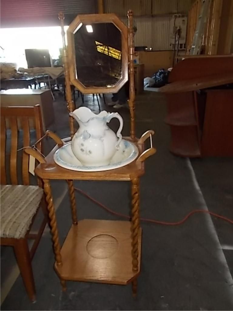 Pitcher & Bowl Set Blue & White Trimmed in Gold
