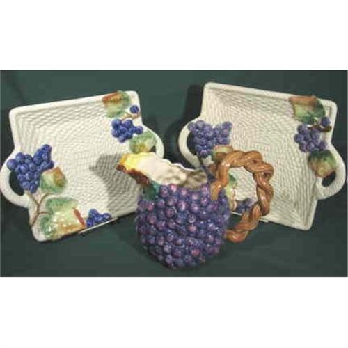 </font></strong>Pitcher 11" spot to handle. 8.1/2" tall. Shaped like a bunch of grapes with twisted vine handle.Trays 13" handle to handle X 10". </font>