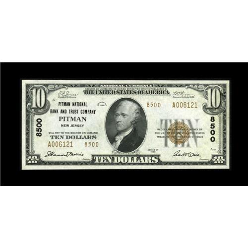 Pitman, NJ - $10 1929 Ty. 2 Pitman NB & TC Ch. # 8500Th