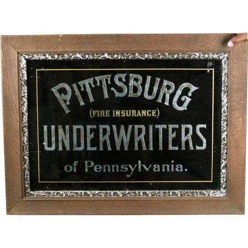 Pittsburg Insurance Reverse paint advertising sign on glass, in original frame 24 x 32"