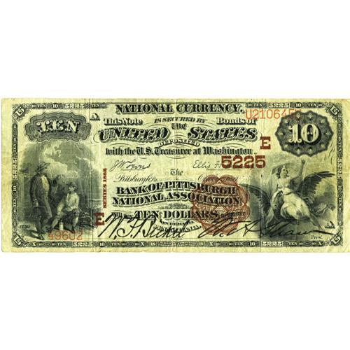 <B>Pittsburgh, PA</B></I> - $10 1882 Brown Back Fr. 490 <B>The Bank of Pittsburgh, National Assoc</B></I> Ch. # (E)5225<BR>A nice Brown Back that is perfect for type. <B>Fine-Very Fine.</B></I>